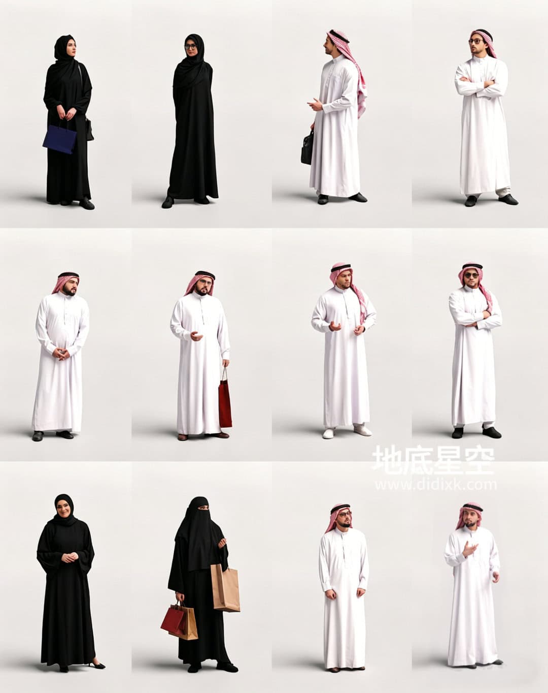 包含12组戴头巾的阿拉伯角色人物。